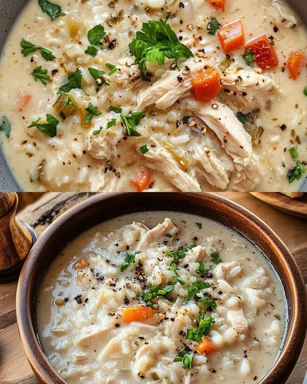 Cremige Hähnchen-Reis-Suppe (Slow Cooker)